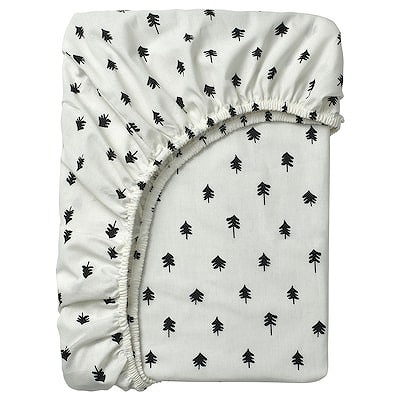 IKEA イケア ボックスシーツ ベビーベッド用 ホワイト 木立模様 60x120cm m80572397 GRONFINK グローンフィンク