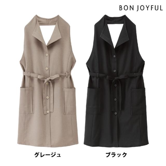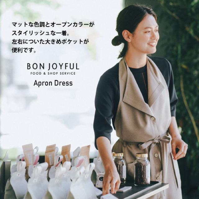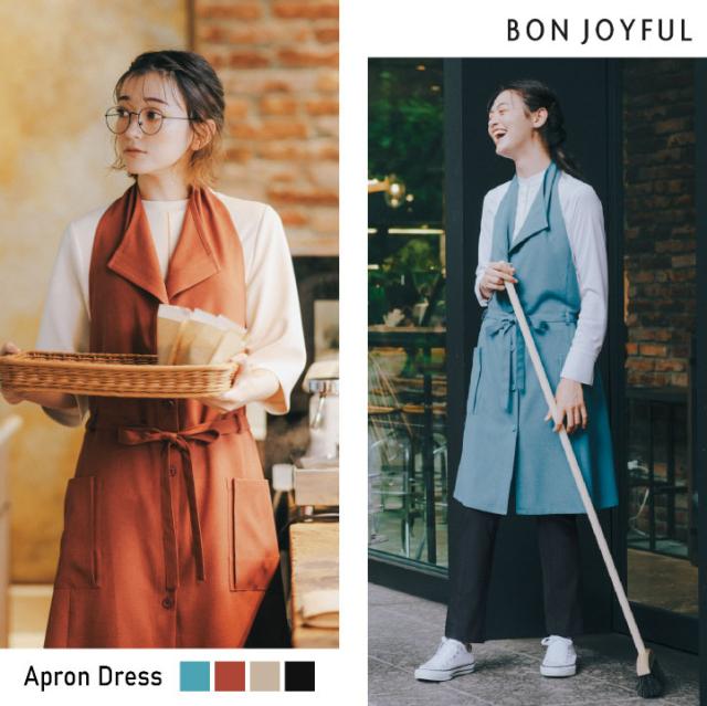 ボンユニ エプロンドレス ロング 膝丈 チュニック ワンピース 胸当て 首掛け 無地 おしゃれ かわいい 北欧 飲食店 接客業 カフェ レストラン ベーカリー パン屋 花屋 サロン ソムリエ レディース 制服 ユニフォーム 青 茶 グレー 黒 bo-27208