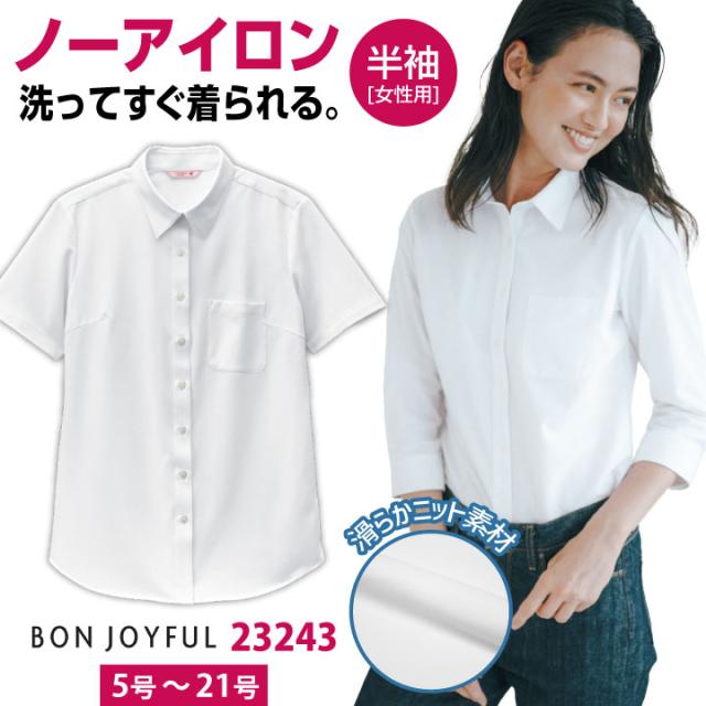 ボンユニ ワイシャツ レディース 半袖 ブラウス 白シャツ レギュラーカラー カッターシャツ ノーアイロン ニット 飲食店 接客業 レストラン オフィス ビジネス 就活 就職活動 リクルート 仕事 女性用 制服 ユニフォーム 大きいサイズ bo-23243