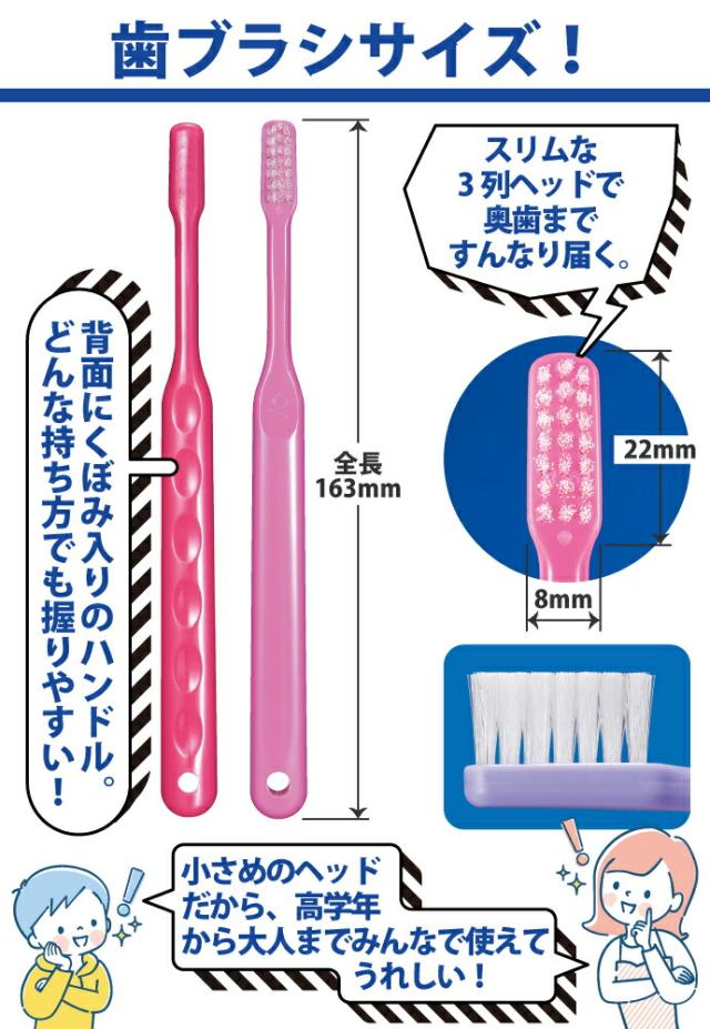 ※ヘッドが小さめなので、子ども歯ブラシから大人歯ブラシへの切り替え時期にもおすすめです。