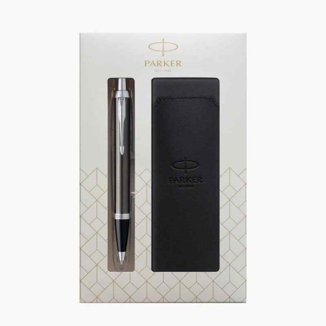 セット内容…「パーカー・IM」のボールペン、パーカー オリジナルのペンケース(素材:PU)、ギフトボックス(素材:紙)。