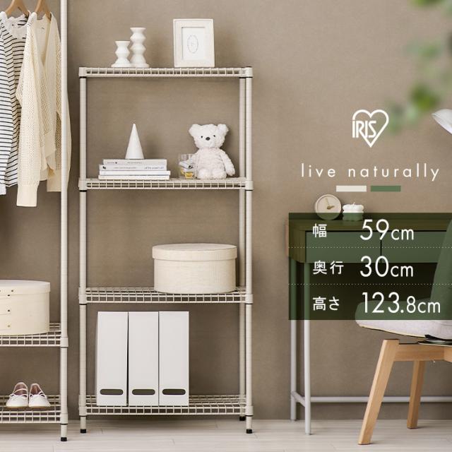 スチールラック 幅59 収納ラック 4段 収納棚 本棚 ラック オープンラック メタルラック メタルシェルフ 棚板高さ調節 整理棚 収納 リビング キッチン 寝室 カラースチールシェルフ ラック小 カーキ ベージュ アイリスオーヤマ SEC-590