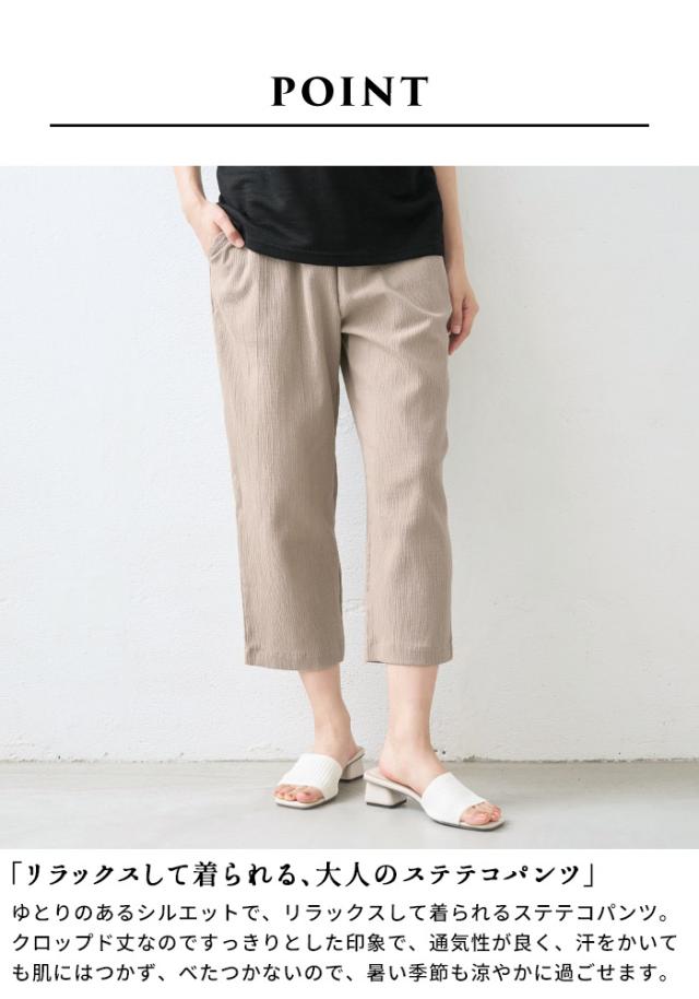 パンツ ステテコ イージーパンツ 薄手 高島ちぢみ 大人の ステテコパンツ 日本製 40代 50代 60代 30代 女性 ファッション ルームウェア レディース 夏 綿100% コットン100% ゆったり パジャマ パンツのみ 下だけ ズボン おしゃれ サラサラ 楽 涼しい 涼感 涼やかパンツ ウエストゴム リラックスパンツ ルームウェア 部屋着 グレージュ ベージュ ネイビー 紺