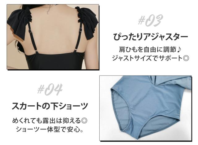 レディース 水着 肩フリル