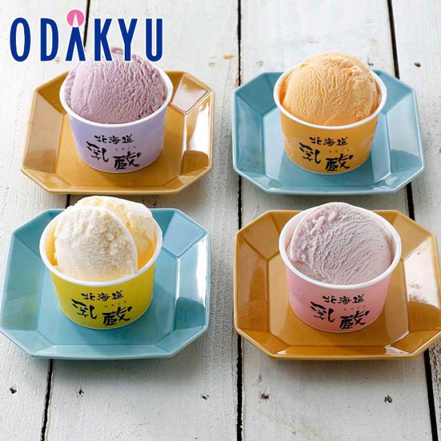 北海道産の牛乳を使用した4種類のアイスクリームのセット。人気のバニラに3種類のフルーツ味を加えました。