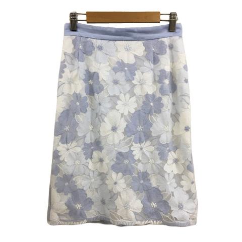 【中古】デビュー ド フィオレ スカート タイト 膝丈 レース 刺繍 花柄 総柄 36 水色 白 ライトブルー ホワイト