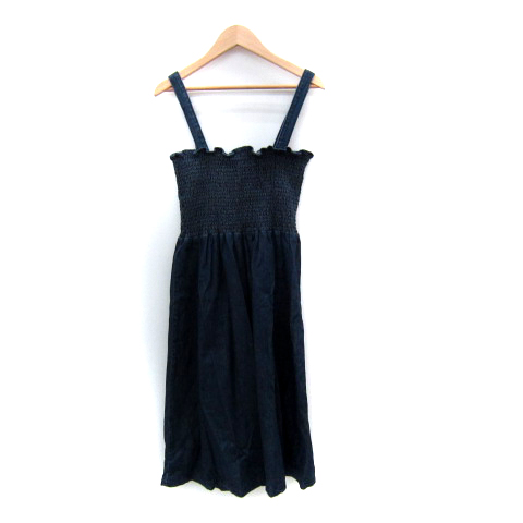【中古】エージーバイアクアガール デニムキャミソールワンピース ベアトップワンピース 2way ミモレ M 紺 レディース
