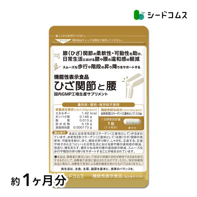 機能性表示食品 ひざ関節と腰 約1ヵ月分 非変性2型コラーゲン サプリ 健康食品