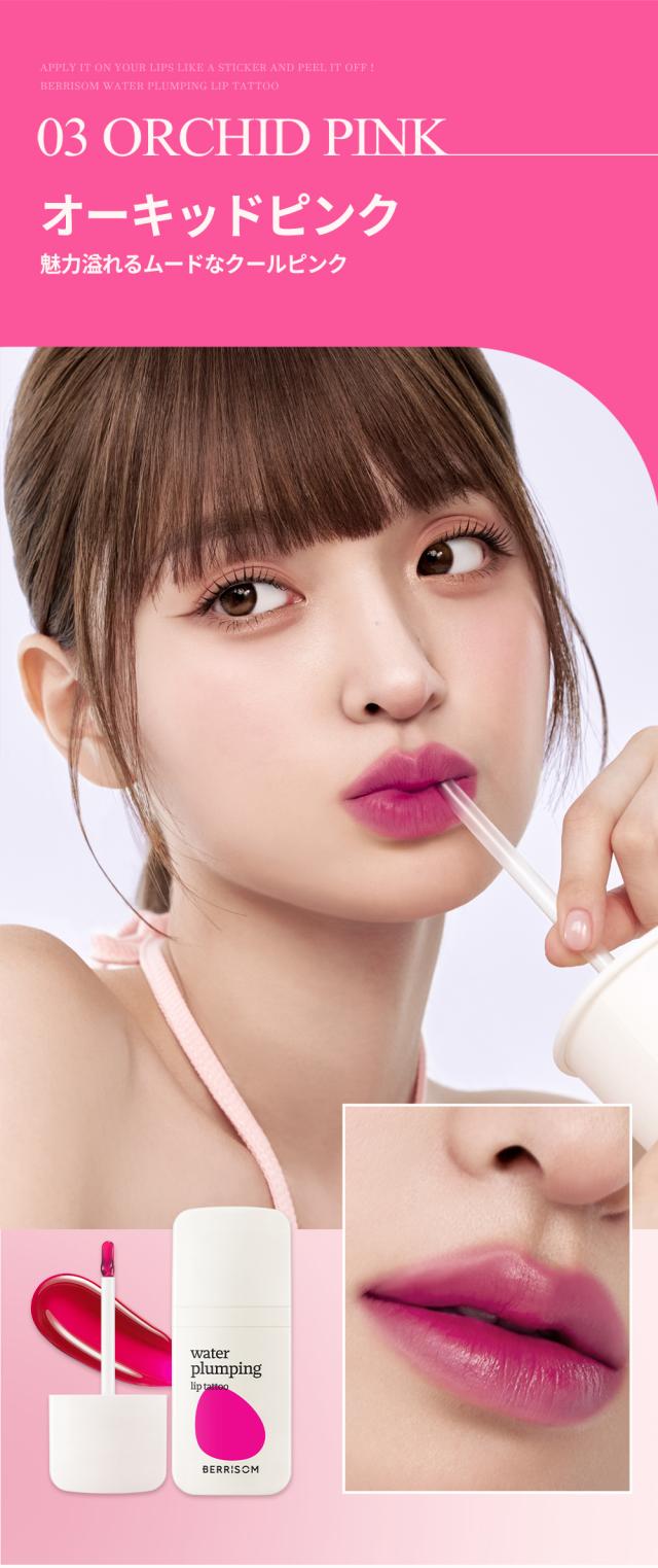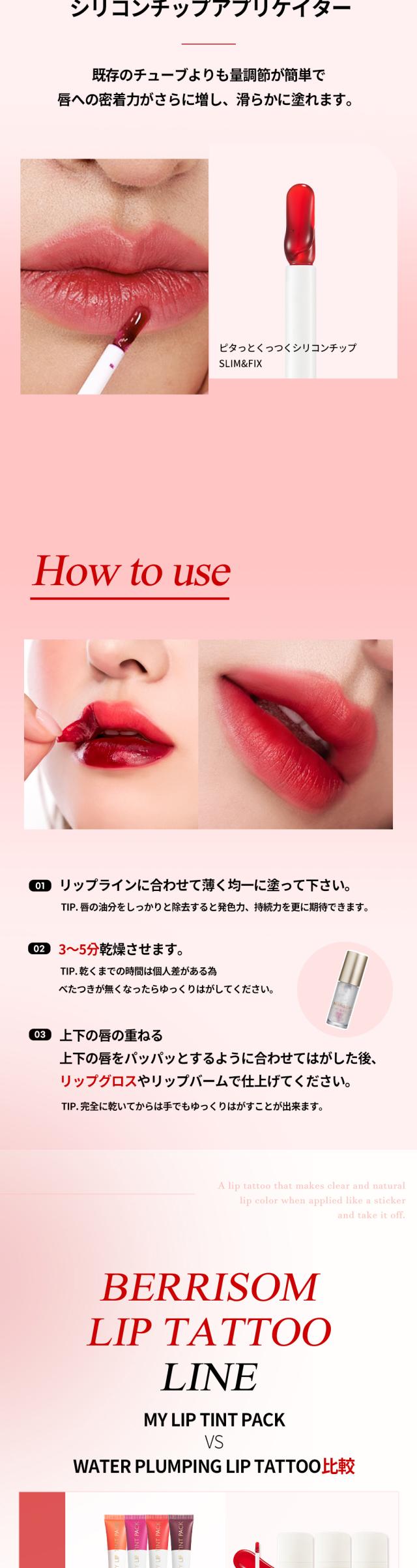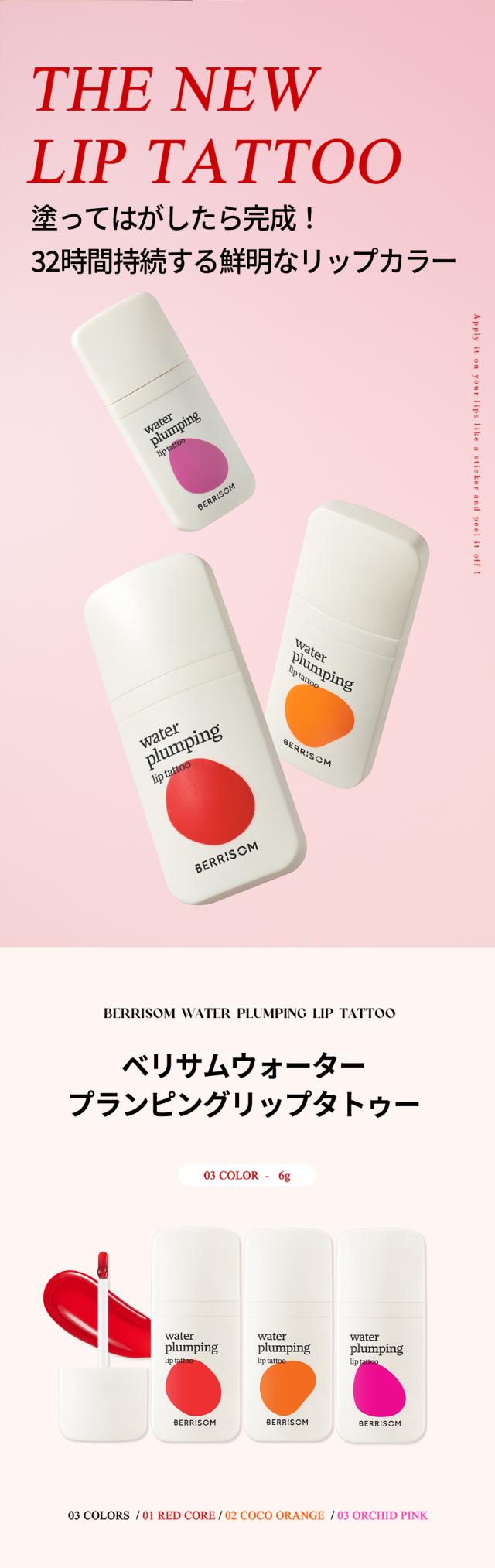 berrisom公式 NEW 神プランピングリップステッカー ウォータープランピング リップタトゥー 全5カラー 6g べリサム ティント リップメイク 角質 保湿 色持続 韓国コスメ
