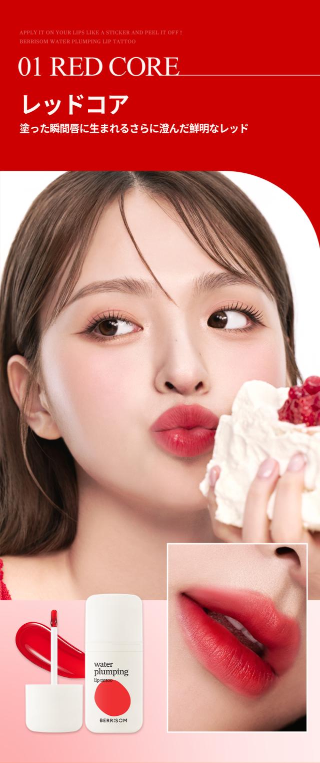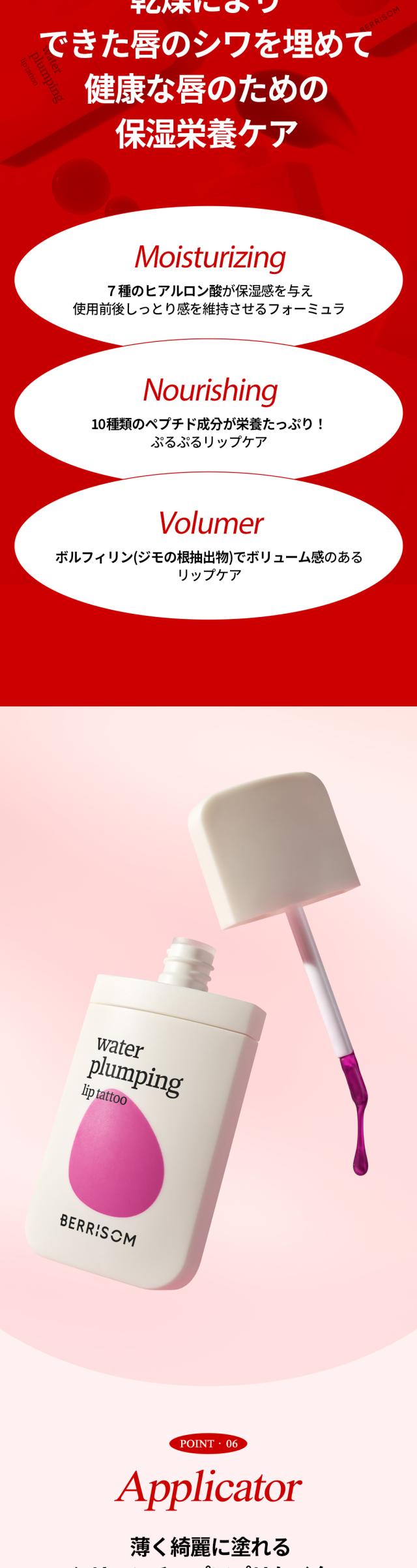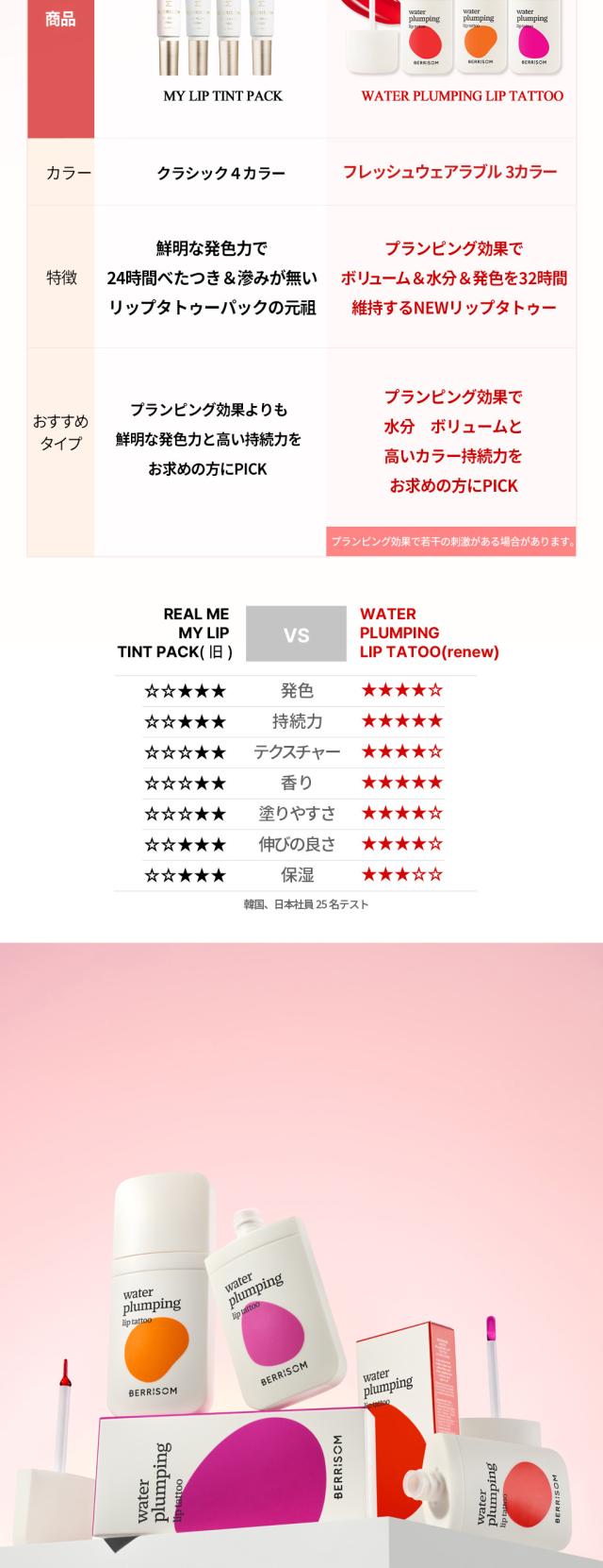 berrisom公式 NEW 神プランピングリップステッカー ウォータープランピング リップタトゥー 全5カラー 6g べリサム ティント リップメイク 角質 保湿 色持続 韓国コスメ