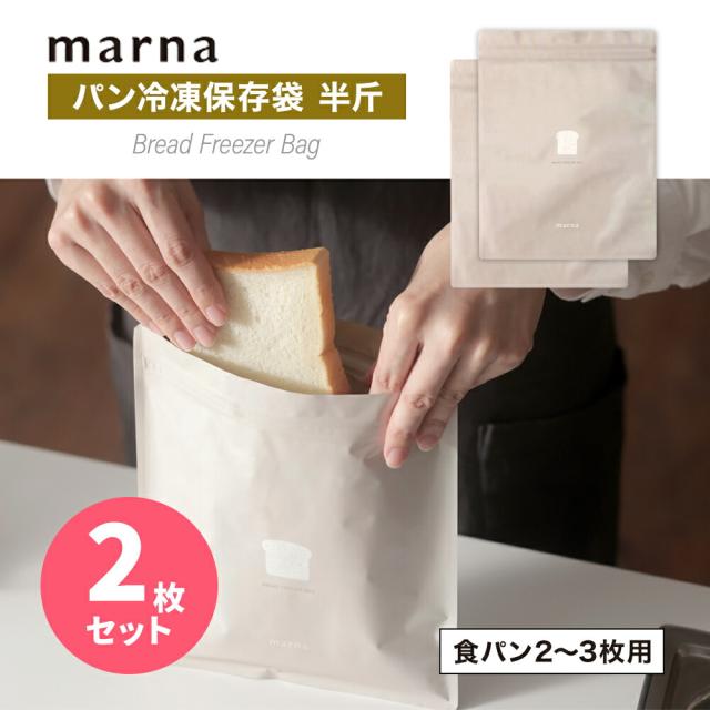 【メール便2個まで】marna パン冷凍保存袋 ベージュ K766BE 半斤用 2枚入り 食パン 半斤 アルミ 密閉容器 密閉保存容器 保存ケース ジッパー パン袋 洗える おしゃれ キッチングッズ キッチン雑貨 便利グッズ かわいい フリーザーバッグ プチギフト プレゼント