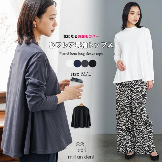 春新作 裾フレアロンT シャツ ロンT コットン クルーネック M L トップス レディース 春夏 ミリアンデニ メール便(郵2) t92225