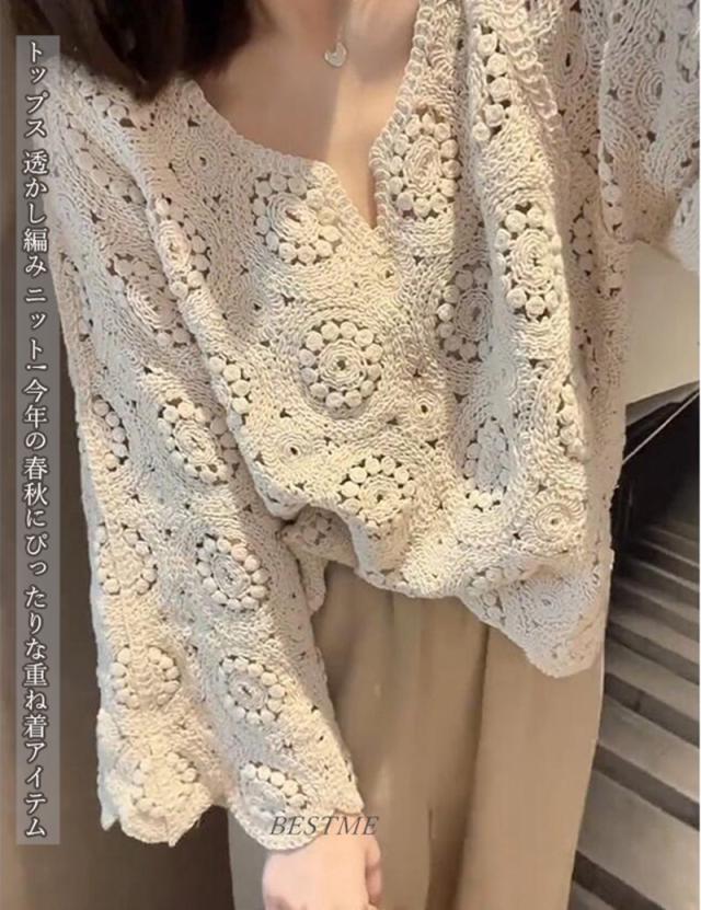 ◎大人気のトップス 透かし編み ニット! 今年の春秋にぴったりな重ね着アイテム。