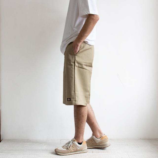 Dickies定番素材であるTCツイル(コットン:35% /ポリエステル:65%)使用を使用したワークを採用した定番のワークショートパンツ。ベーシックなデザインでTシャツやシャツとの相性も抜群な着回しやすい1枚。