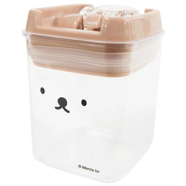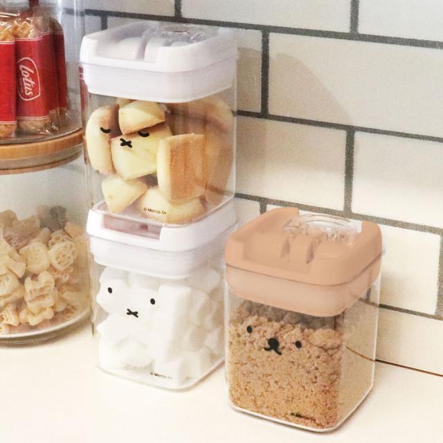 ミッフィーのデザインがかわいい、樹脂製キャニスター270mlです。パッキン付きの蓋をレバーでしっかりとロックするので、密閉性が高く、乾物類や調味料、スナックなど食品の保存に最適です。その他、小物収納にも使いやすく、ほんわかとしたミッフィーが空間に癒しを与えてくれます。
