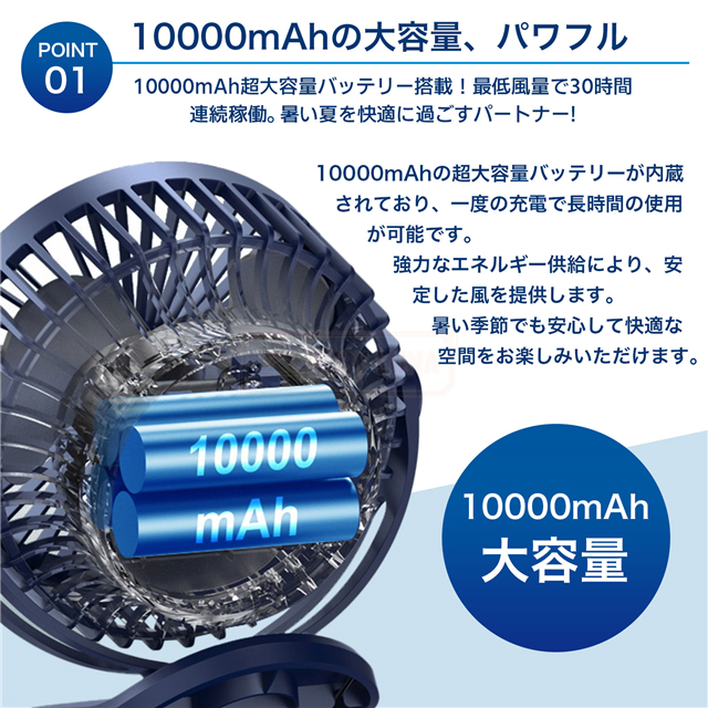 | 【パワー満点、涼しさを思う存分に】 | ◆この真夏用クリップ扇風機は、灼熱の夏の日々にあなたのエネルギー源のようなもので、10000mAhの大容量バッテリーを内蔵し、涼しさを絶え間なく供給します。 ◆疲れを知らない戦士のように、USB-C充電ケーブルで電力を取り込み、いつでもあなたの夏の戦いに備えます。 ◆デジタルディスプレイは忠実な参謀のように、リアルタイムでバッテリー残量を報告し、自分のエネルギー備蓄を把握することができます。 ◆これさえあれば、夏をコントロールする超能力を手に入れたも同然です。 |