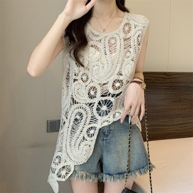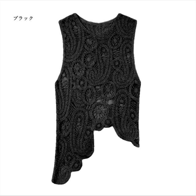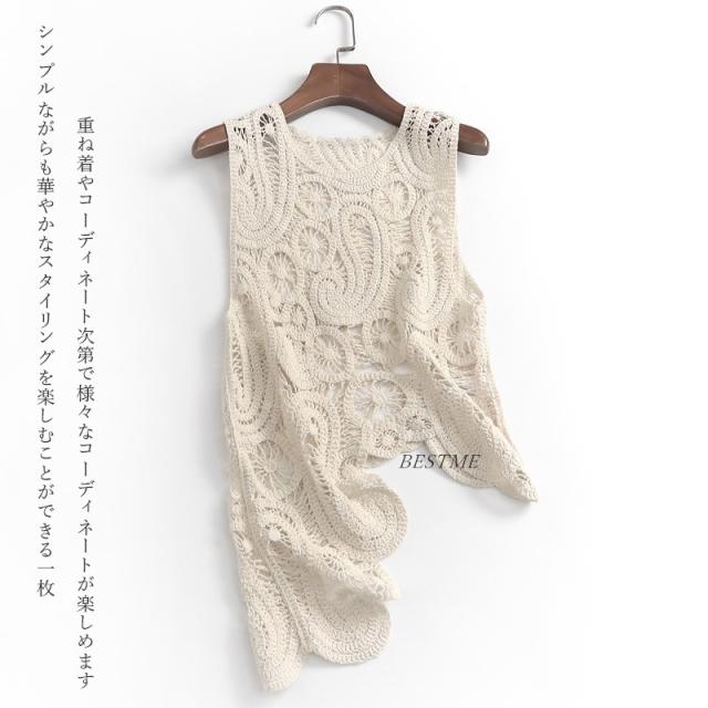 送料無料 トップス レース 透かし編み ニット レディース セーター ノースリーブ 春 夏 秋 レイヤード 重ね着 ケーブル編み ミディアム丈 ラウンドネック ドロップショルダー 無地 シンプル おしゃれ かわいい ゆったり 網目 ペイズリー柄 トレンド ナチュラル モード 上品