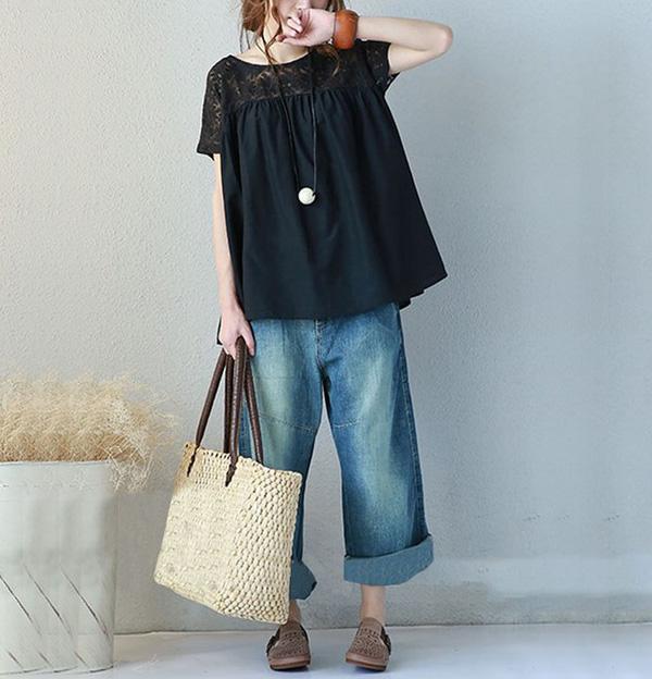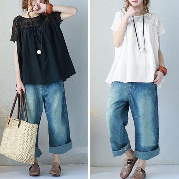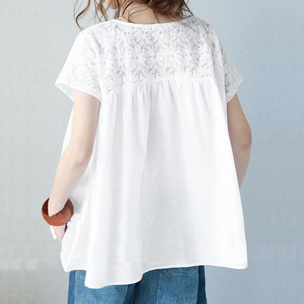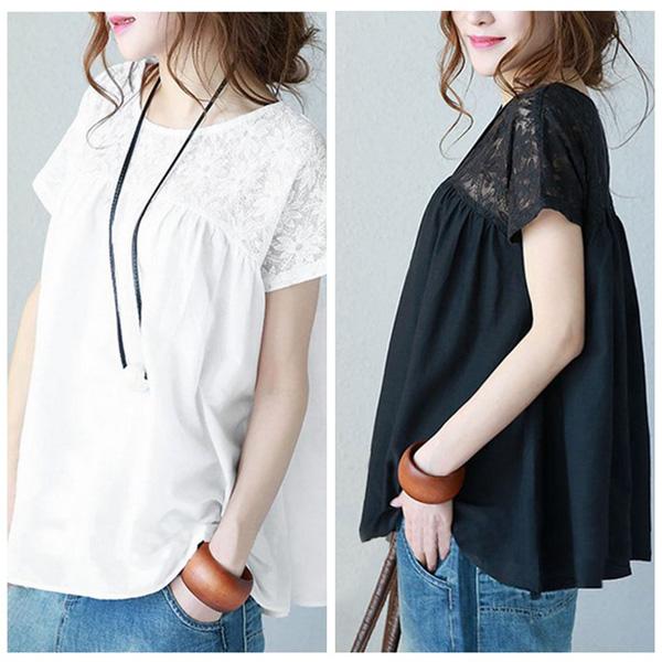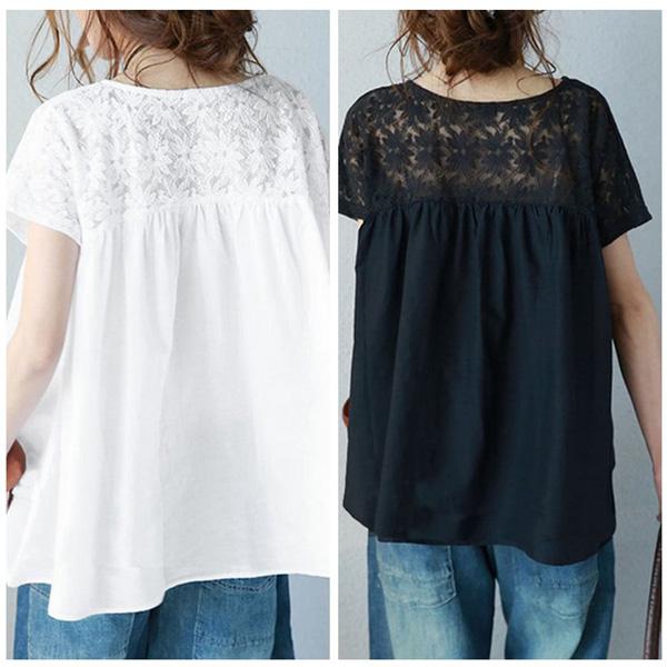 レディースブラウス レディース トップス ブラウス チュニック 花柄 レース ゆる感 ゆったり 半袖 Uネック 丸首 体型カバー 柄物 フラワーデザイン 無地レース 半袖 シャツ トップス 大きいサイズ ゆったりカットソー おしゃれ かわいい ママ ママコーデ 女性 主婦 きれいめ 大人カジュアル ファッション 人気 おすすめ 送料無料