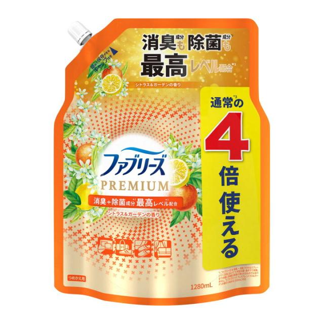 ファブリーズ PREMIUM 消臭スプレー 布用 シトラス&ガーデン 詰め替え 4回分(1280ml) 除菌 消臭 プレミアム