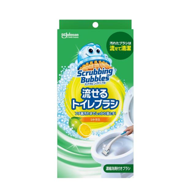 ジョンソン スクラビングバブル 流せるトイレブラシ シトラス 本体+替え4個入 トイレ用 掃除用品 濃縮洗剤付ブラシ 使い捨てブラシ付き