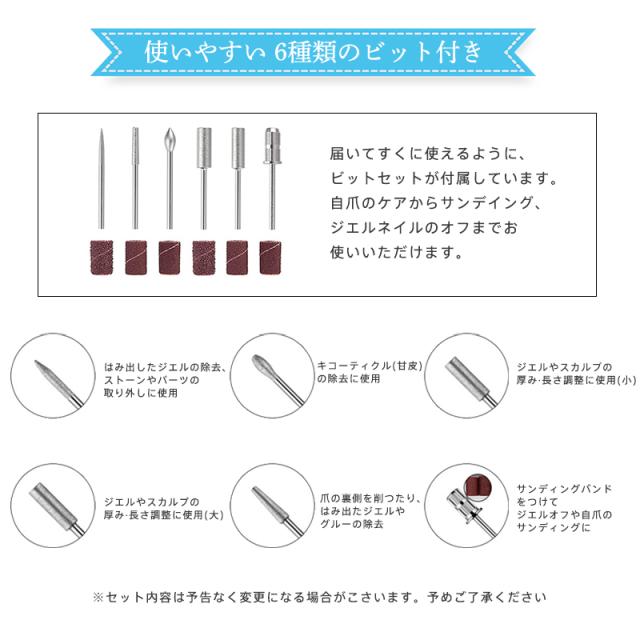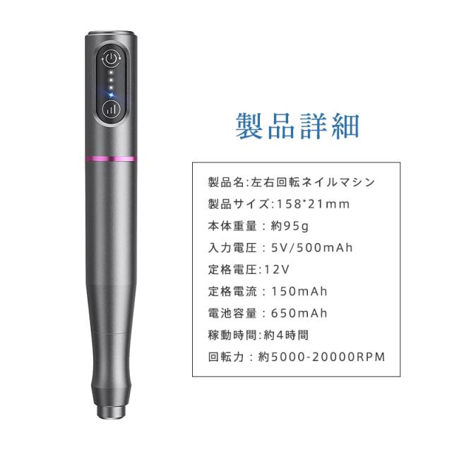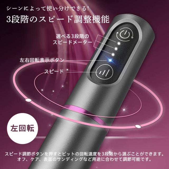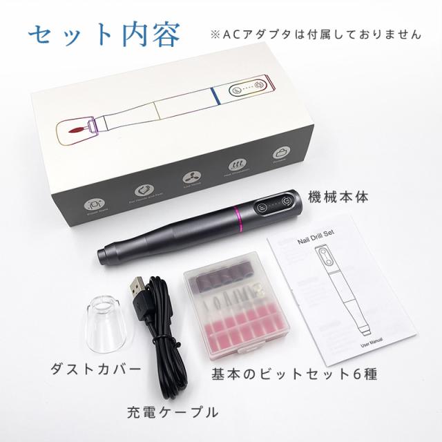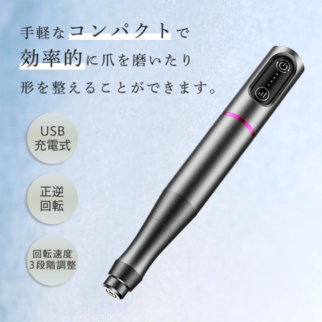 ネイルマシン ネイルポリッシャー 電動 ネイルポリッシュ ビット付き ネイルオフ 爪削り 正逆回転 爪磨き 角質除去 充電 甘皮ケ