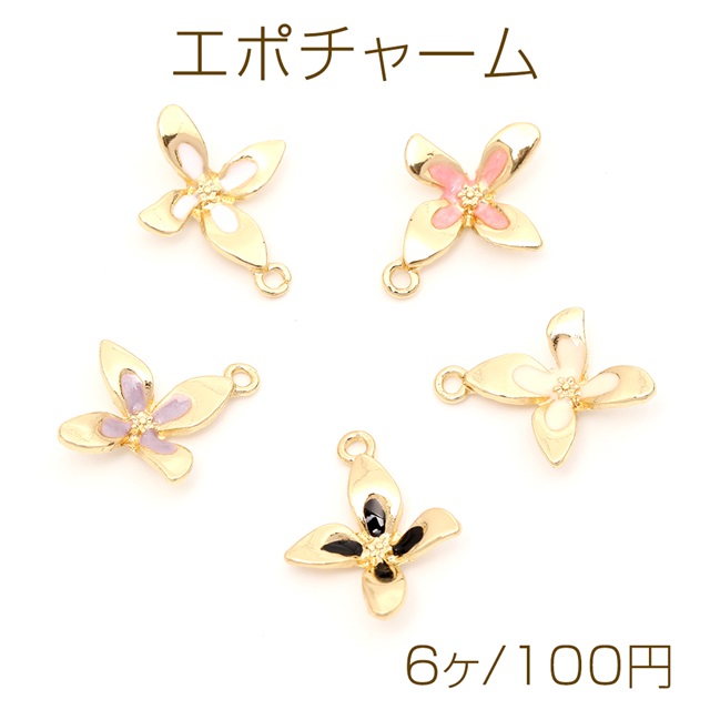 エポチャーム エポフラワーチャーム メタルフラワーチャーム 立体フラワーチャーム 四弁花 1カン付き 約13×16mm(6ヶ)