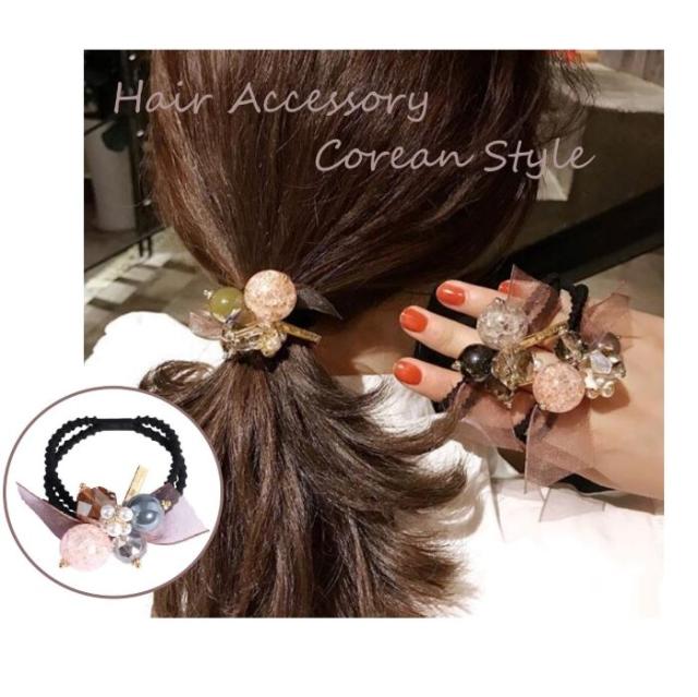 ヘアゴム ヘアアクセサリー ヘアアレンジ シフォン ボール チャーム 2連ゴム おしゃれ 韓国風