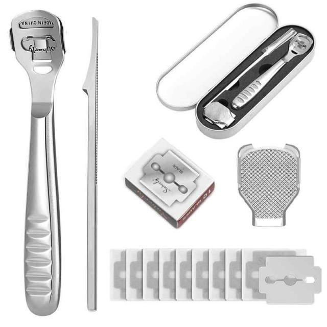 【仕様】本製品には、やすり1本、角質カッター1本、そして交換用ブレード10枚が含まれており、あなたの日常の足のケアニーズを満たすことができます。