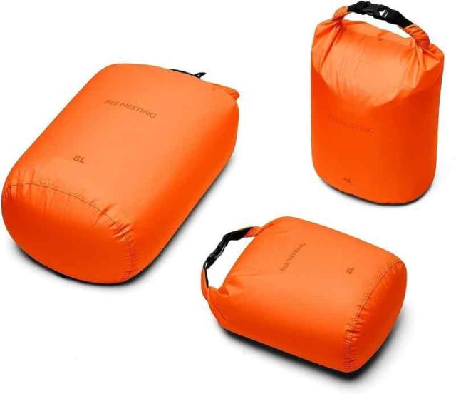 BeeNestingバックパッキング用超軽量ドライバッグセット、キャンプ、ハイキング、オートバイ用の防水ドライバック、3パックの軽量スタッフサックセット… (オレンジ, 3 Pack(2L+4L+8L))