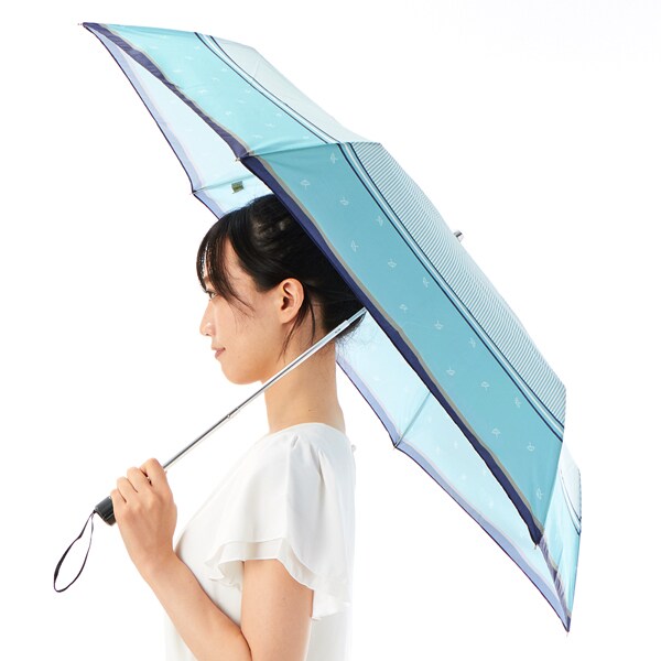 アーノルドパーマーの折りたたみ・ミニ傘。ストライプ×アンブレラ柄のプリントは、雨の日のお出かけも楽しくなるデザインです。