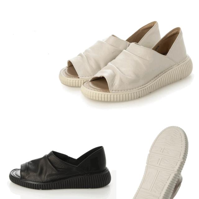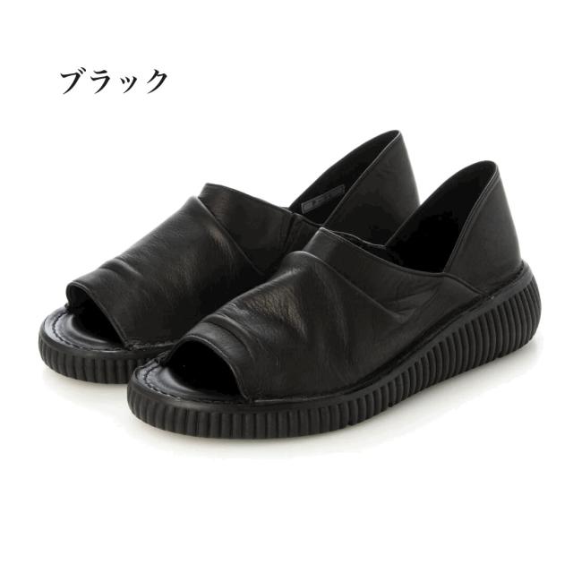 日本製 本革 牛革 ソフト牛革 シャーリングデザイン サマーシューズ サンダル ふかふかソール 柔らかい 幅広 4e 外反母趾 軽量 履きやすい 歩きやすい 痛くない 安定感 カジュアル ブラック アイボリー オーク