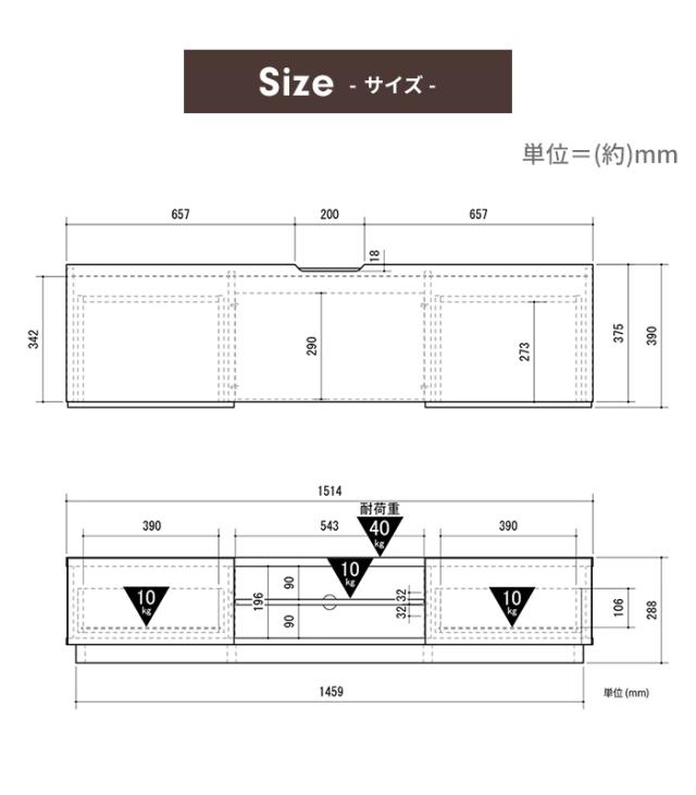 | [天板]40kg [棚板]10kg [引出]10kg |