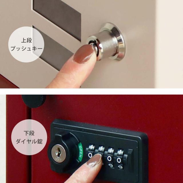 上段は押すだけで簡単に施錠できます。解錠には鍵を使用してください。