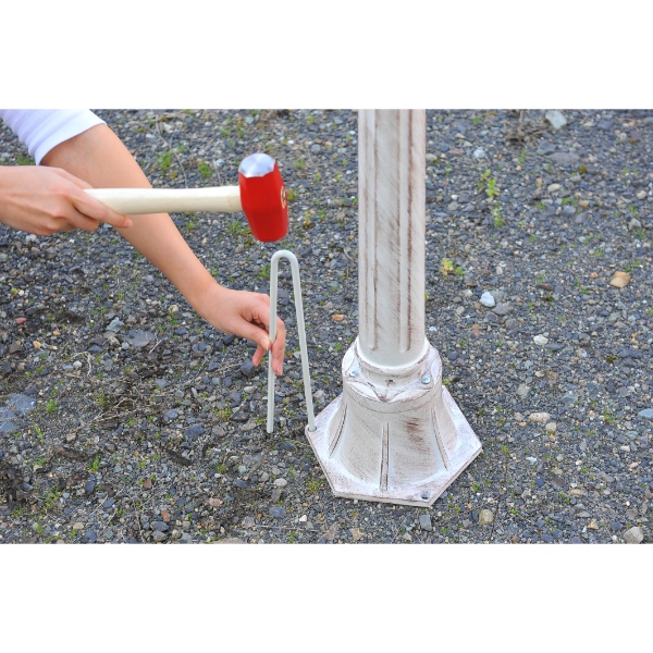 脚は土に長さ約30cmのくい3本を打ち込んで固定します。