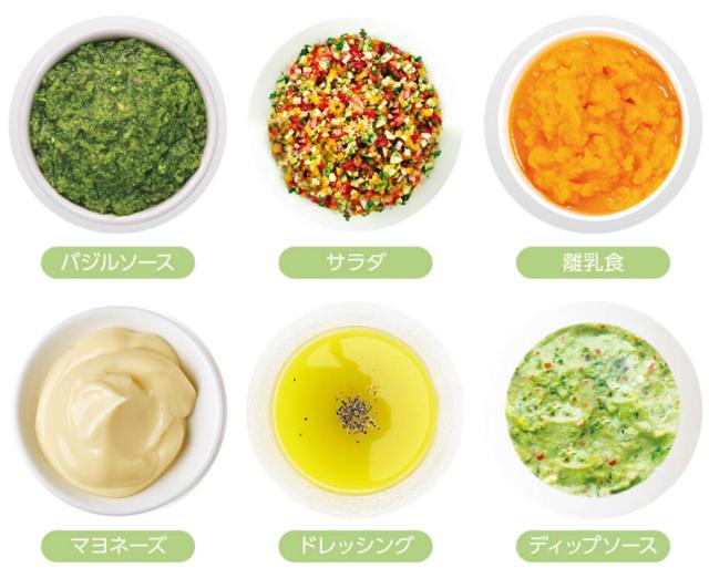 ●かく拌用の羽根に付け替えれば、マヨネーズや離乳食のようなペースト状のものも作れます。