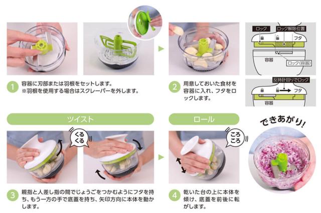 クルクルひねって転がすだけでみじん切りができる