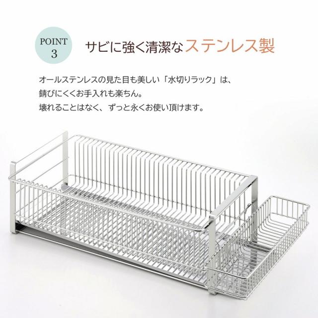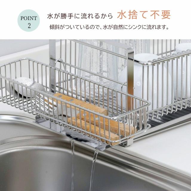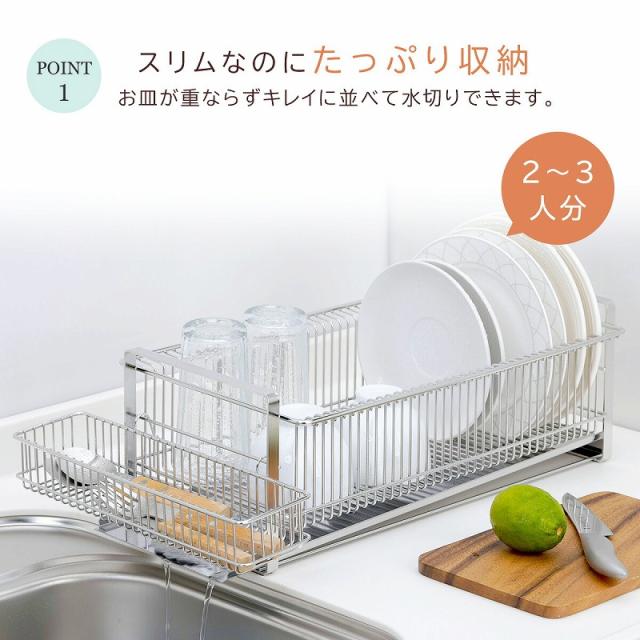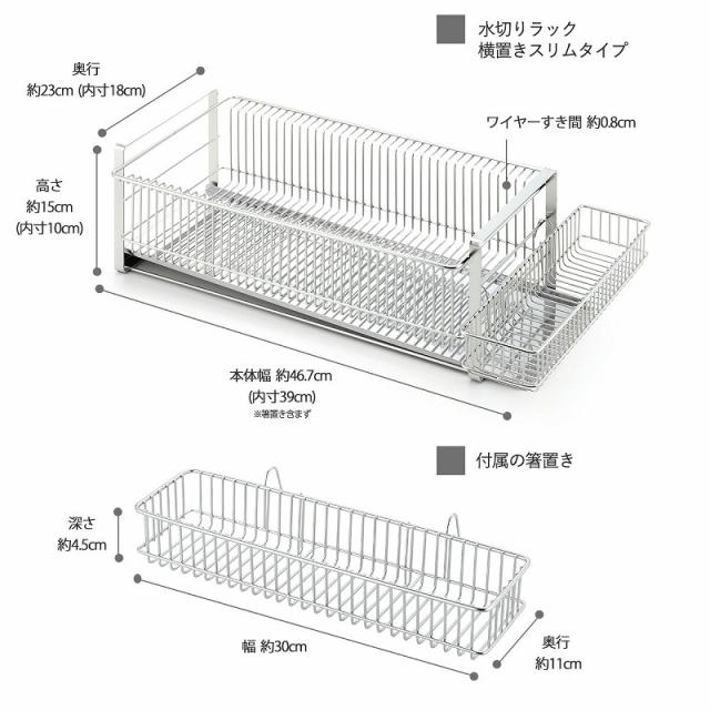 水切りラック スリム 横置き 箸置き付 日本製 水切りバスケット ステンレス 頑丈 丈夫 清潔 スッキリ かご 水切り 下村企販 スリムでも たっぷり 水切り 燕三条 ツバメ 国産