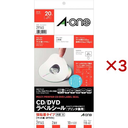 エーワン ラベルシール CD DVDラベル 2面 118×118mm 29145(10シート×3セット)[文房具 その他]