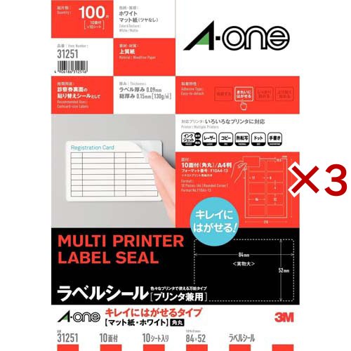 エーワン ラベルシール きれいにはがせる 10面 84×52mm 31251(10シート×3セット)[文房具 その他]