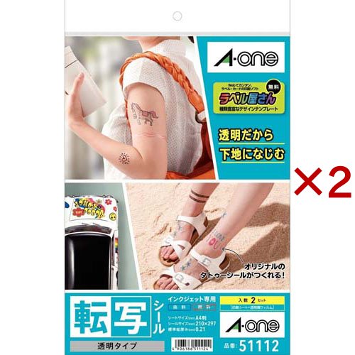 エーワン 転写シール タトゥシール インクジェット 染料 透明 A4 51112(2シート×2セット)[文房具 その他]