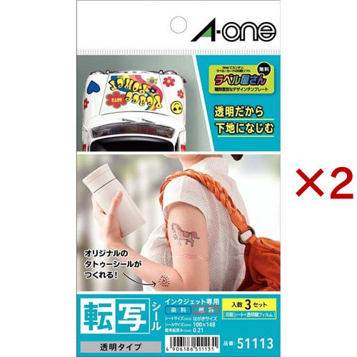 エーワン 転写シール タトゥシール インクジェット 染料 透明 はがき 51113(3シート×2セット)[文房具 その他]