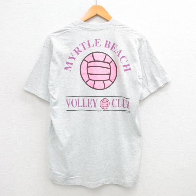 【商品名】 L★古着 スクリーンスターズ 半袖 ビンテージ Tシャツ メンズ 90年代 90s マートルビーチ バレーボール クルーネック USA製 薄グレー 霜降り