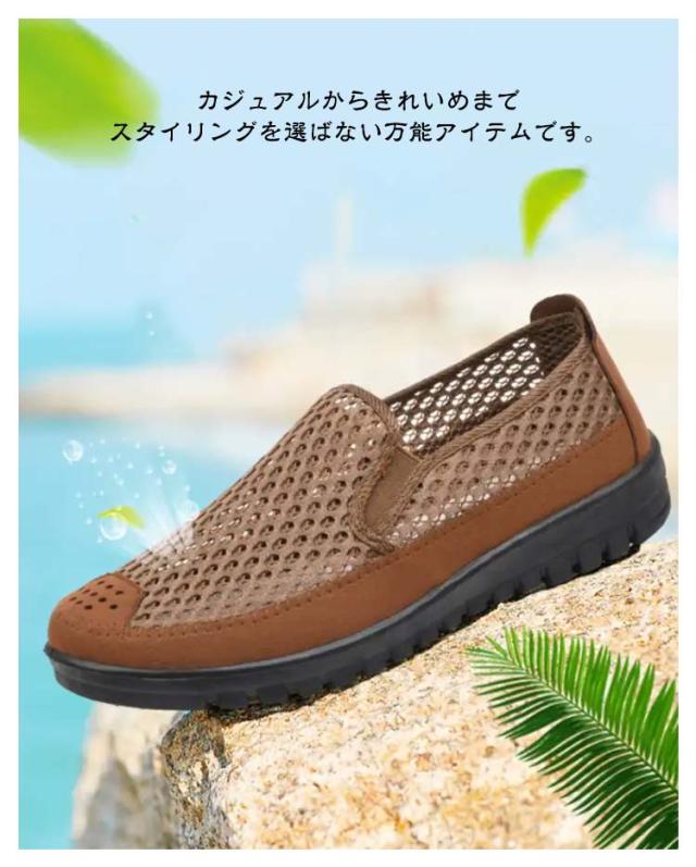 | 見た目からも涼しげな印象を与えるメッシュのスリッポン 合成繊維をメッシュ状にしたアッパーを採用しているので、通気性抜群。 まるで素足のような感覚で、長時間履いても疲れにくい設計です。 素材が柔らかく、かかとが踏める仕様なのでバブーシュとしてもお召しいただけます。 サッと脱ぎ履きが容易にできるので、忙しい時やお出かけ先でも安心。 カジュアルからきれいめまでスタイリングを選ばない万能アイテムです。 | |