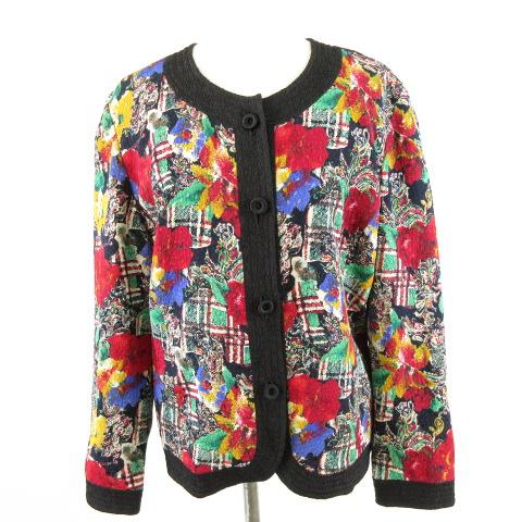 【中古】Collezione di Rip ノーカラージャケット 長袖 花柄 黒 緑 赤 *A714 レディース