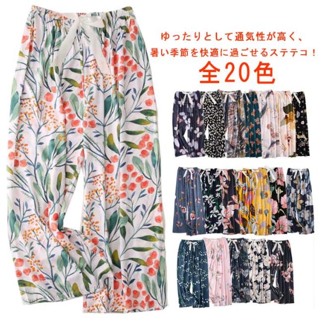 通気性 ステテコ 柔らかい ルームウェア ボトム ルームパンツ 蒸れにくい 薄手 ゆったりパンツ ウエストゴム 花柄 婦人 女性用 リラックスウェア ロング丈 夏用 部屋着 ステテコ 涼しい かわいい おしゃれ 楽ちん