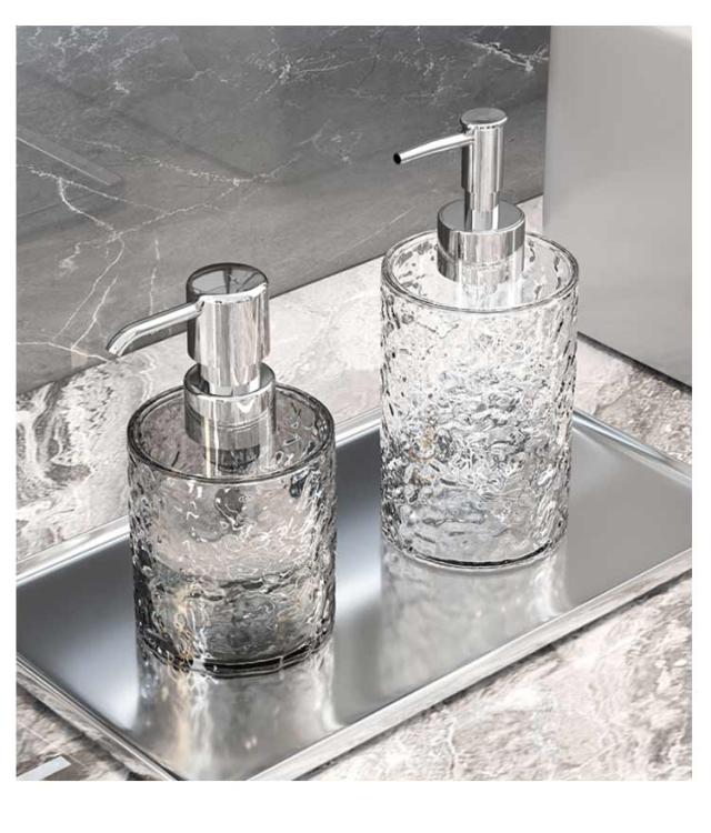 | 水の波紋のような凹凸感のあるデザインが魅力的な泡ソープボトル。 軽く押しただけでふんわりと上質な泡が出る、泡タイプのソープディスペンサー。きめ細かな泡は、手肌をやさしく洗いあげます。 | |
