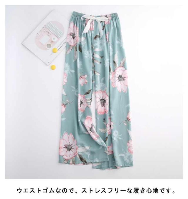 柔らかい ルームパンツ 通気性 リラックスウェア 花柄 ステテコ ボトム 薄手 ステテコ 蒸れにくい ロング丈 婦人 女性用 部屋着 ゆったりパンツ ルームウェア 夏用 ウエストゴム 涼しい かわいい おしゃれ 楽ちん