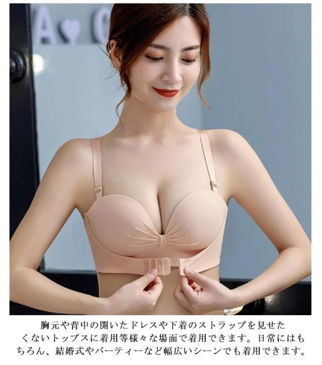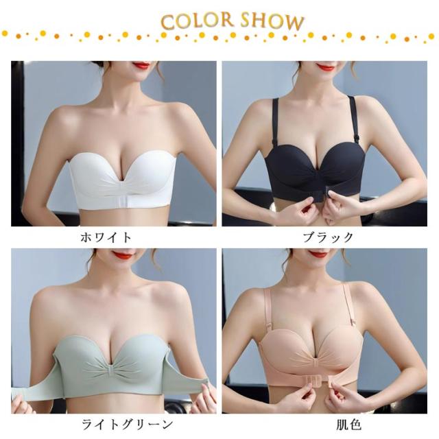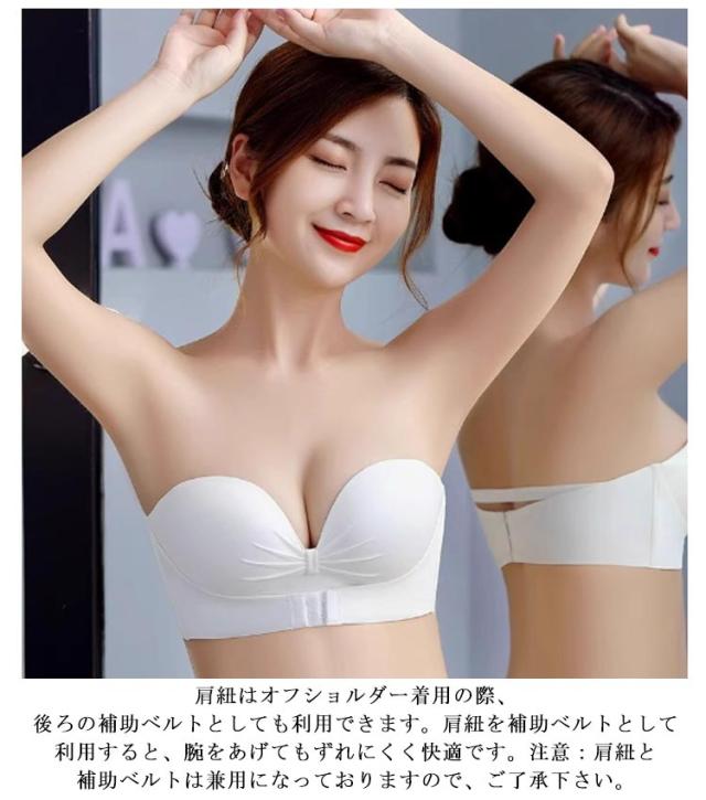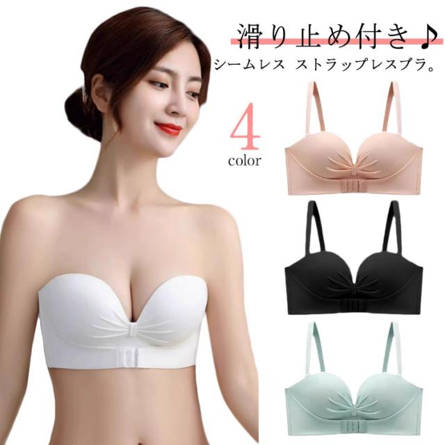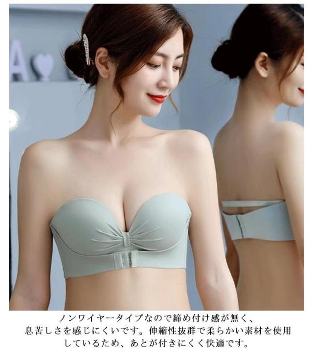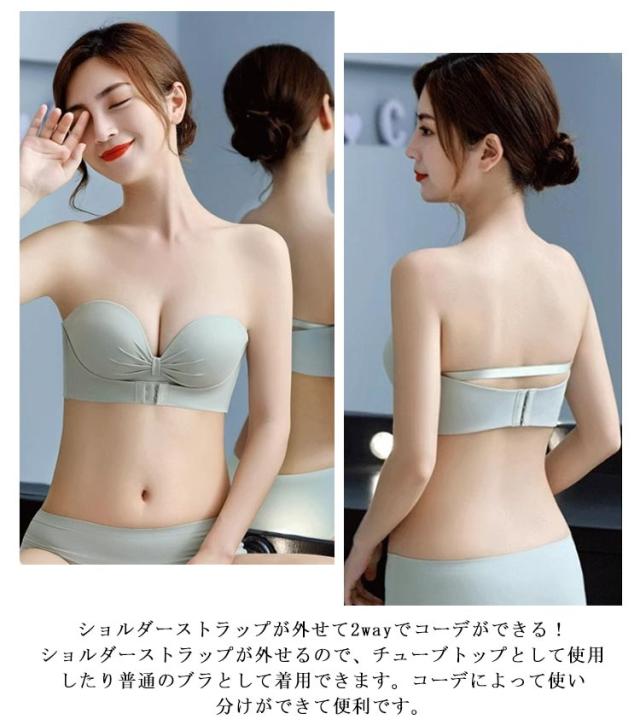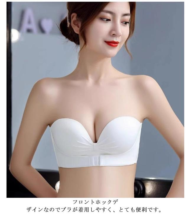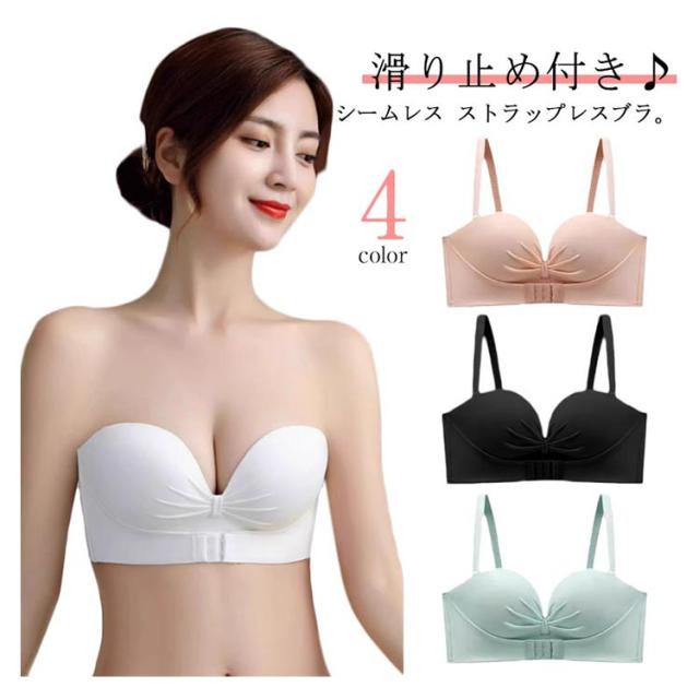 ブラ ノンワイヤー ストラップレスブラ ブラジャー 結婚式 ずれない 落ちない シームレス ストラップレス フロントホック 育乳 チューブトップ 脇高 肩だし ストラップレスブラ 谷間 クロス止め 可愛い おしゃれ ドレス オフショルダー用 インナー