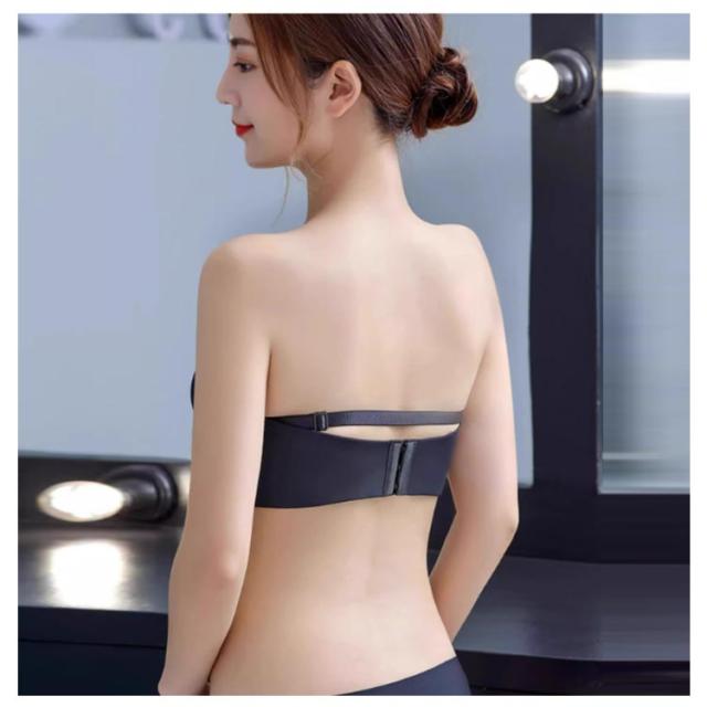 | 滑り止め付き♪シームレス ストラップレスブラ。 フロントホックなので着用しやすく、バストをしっかりサポートします。 ショルダーストラップが外せて2wayでコーデができる!ショルダーストラップが外せるので、チューブトップとして使用したり普通のブラとして着用できます。コーデによって使い分けができて便利です。 ノンワイヤータイプなので締め付け感が無く、息苦しさを感じにくいです。伸縮性抜群で柔らかい素材を使用しているため、あとが付きにくく快適です。 フロントホックデザインなのでブラが着用しやすく、とても便利です。 肩紐はオフショルダー着用の際、後ろの補助ベルトとしても利用できます。肩紐を補助ベルトとして利用すると、腕をあげてもずれにくく快適です。注意:肩紐と補助ベルトは兼用になっておりますので、ご了承下さい。 3cmの厚手パッドで簡単にバストアップができます。立体構造で包み込むようにバストをホールドして、美しくバストを魅せます。 胸元や背中の開いたドレスや下着のストラップを見せたくないトップスに着用等様々な場面で着用できます。日常にはもちろん、結婚式やパーティーなど幅広いシーンでも着用できます。 | |