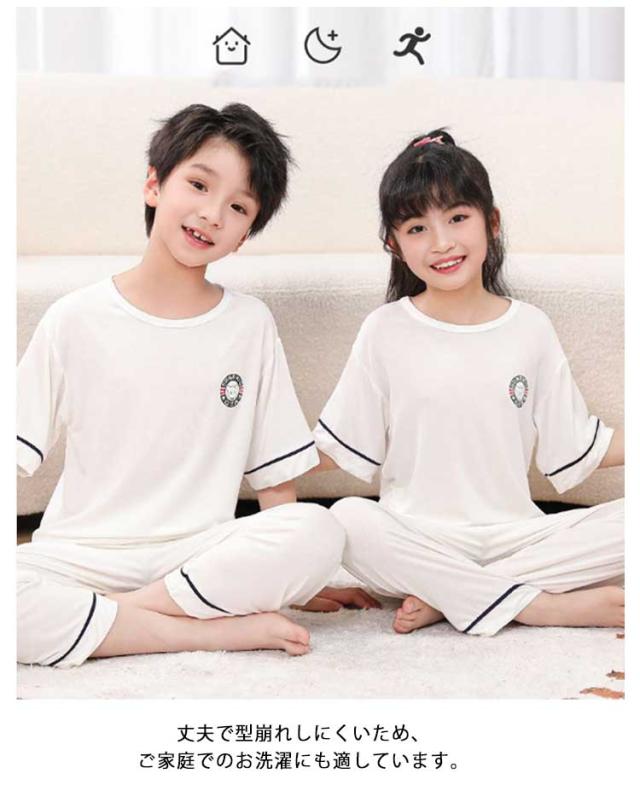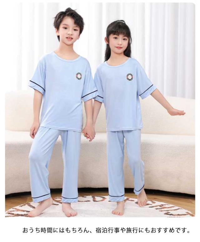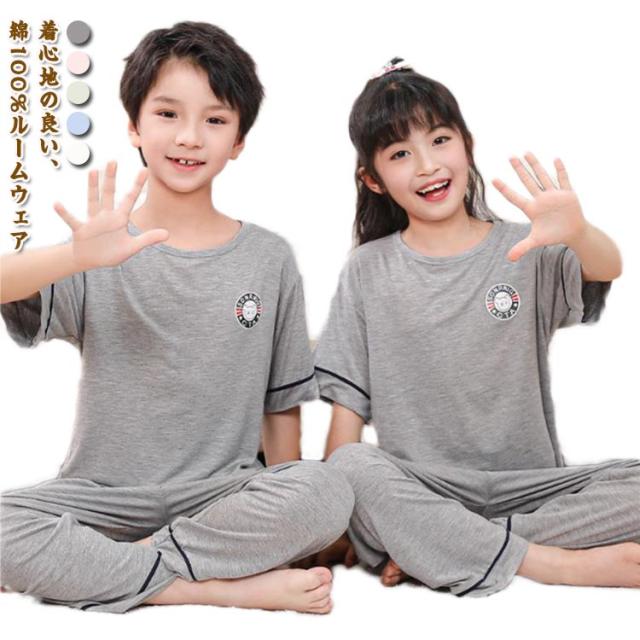 ルームウェア キッズ パジャマ セットアップ 夏 パンツ 上下セット 女の子 半袖 カットソー 部屋着 綿100% 男の子 2点セット 長ズボン 伸縮性 ナイトウェア 子供 tシャツ コットン 薄手 通気性 寝間着 韓国 子供服 かわいい 100 110 120 130 140 150 160
